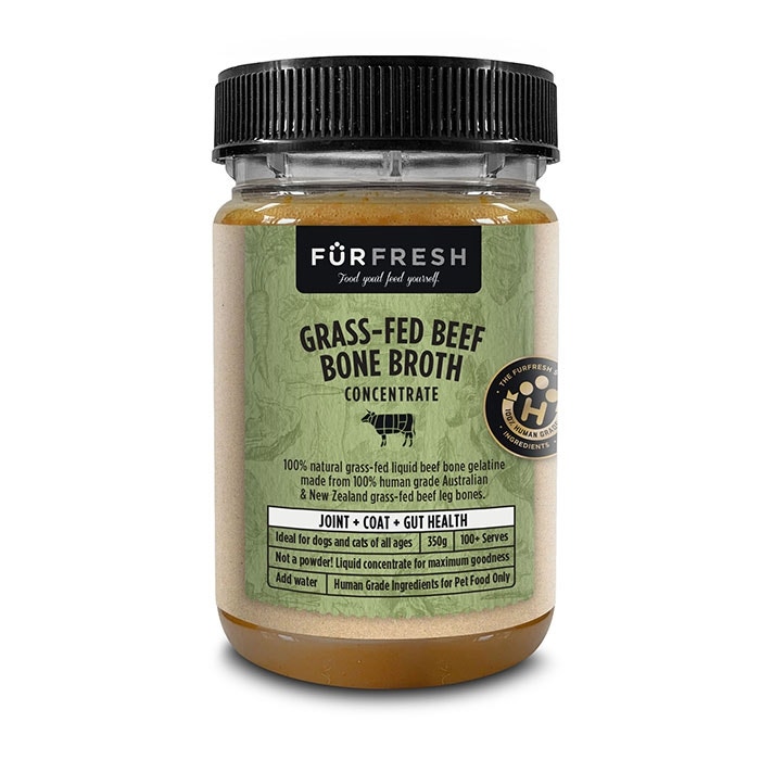 This 100% natural grass-fed liquid beef bone broth for dogs and cats, is made from 100% human grade Australian and New Zealand grass-fed beef leg bones that are slow-cooked at low temperatures for 30 hours. This gentle process maintains the highest ingredient integrity and extracts the most nutrient-dense marrow for joint, coat and gut health. Just add 1 teaspoon to water and serve!
