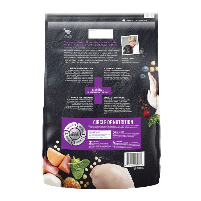 • Raw/fresh chicken for a nutrient rich single animal protein concentrate to promote bone and teeth health.