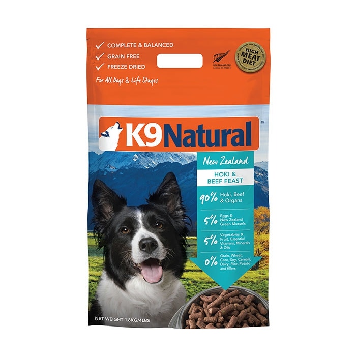 Packed full of New Zealand wholefood ingredients, our K9 Natural Hoki & Beef is made from grass-fed, free-range meat, sustainably caught fish and provide the rich and nourishing proteins and fats needed to give your dog a natural source of energy to thrive.Inspired by nature, guided by science. For your ultimate peace of mind K9 Natural food meets all AAFCO requirements.