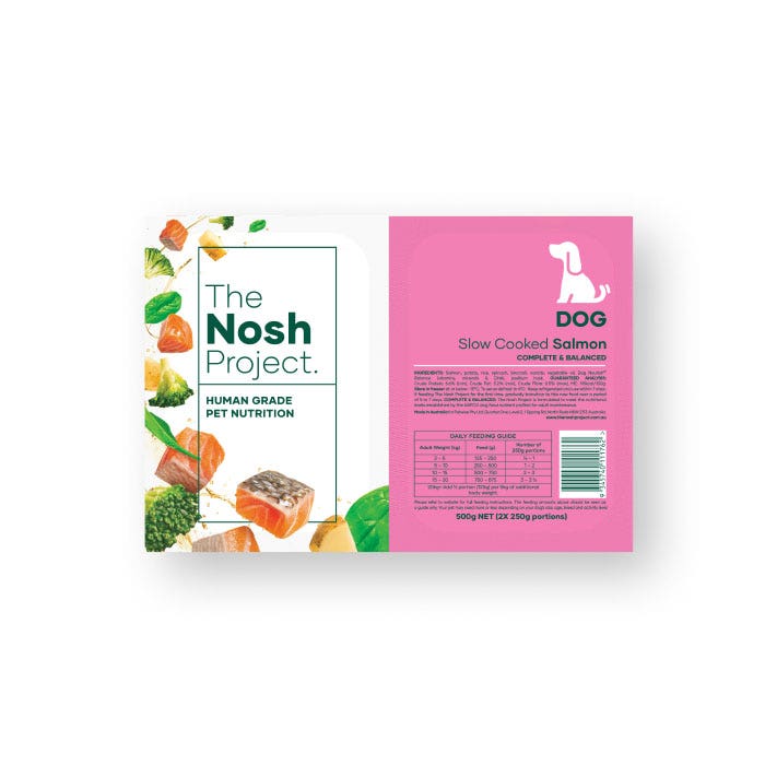 | Advice Care | If feeding The Nosh Project for the first time, gradually transition to this new food over a period of 5 to 7 days. Please refer to website for full feeding instructions. The feeding amounts should be seen as a guide only. Your pet may need more or less depending on your dog’s size, age, breed and activity level. |
