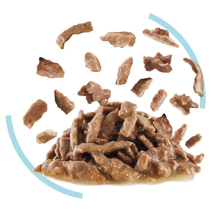 Irregular chunks with a rounded shape provide a unique texture and sensation. During meals, the sensation of different textures in the cats’ mouth has a strong influence over their feeding experience.